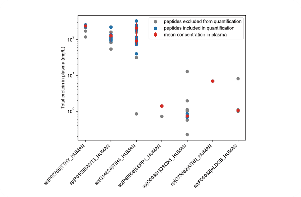 - Increased robustness and quantifiable range by having multiple peptides for quantification